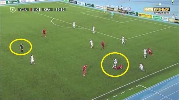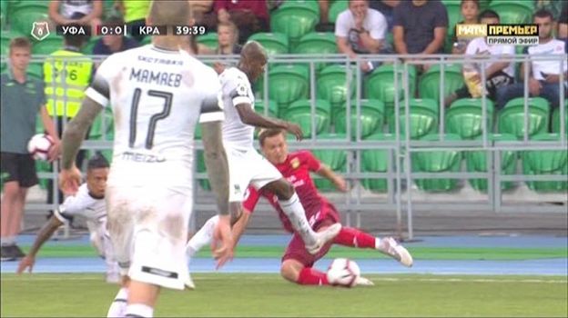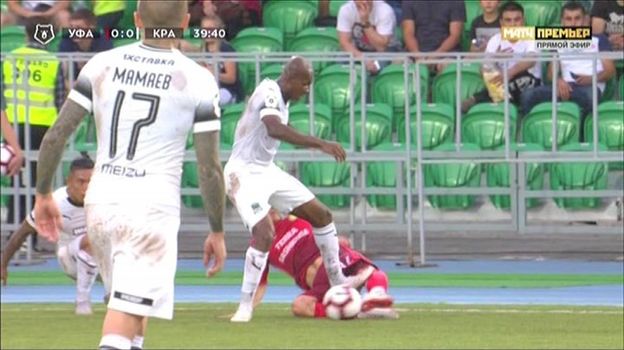 На 40-й минуте матча 3-го тура чемпионата России "Уфа" – "Краснодар" ошибся арбитр Алексей Матюнин, не удалив игрока гостей Шарля Каборе.