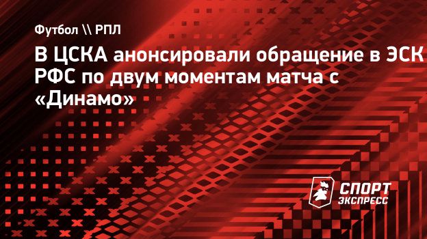 В ЦСКА анонсировали обращение в ЭСК РФС по двум моментам матча с «Динамо»