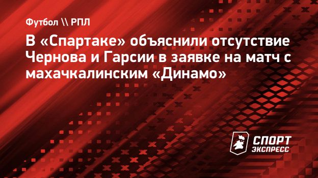 В «Спартаке» объяснили отсутствие Чернова и Гарсии в заявке на матч с махачкалинским «Динамо»