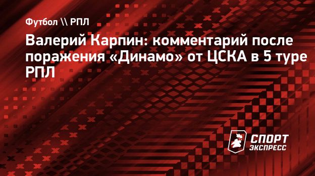 Главный тренер московского «Динамо» Валерий Карпин поделился впечатлениями после поражения от ЦСКА (1:3) в матче 5-го тура РПЛ.