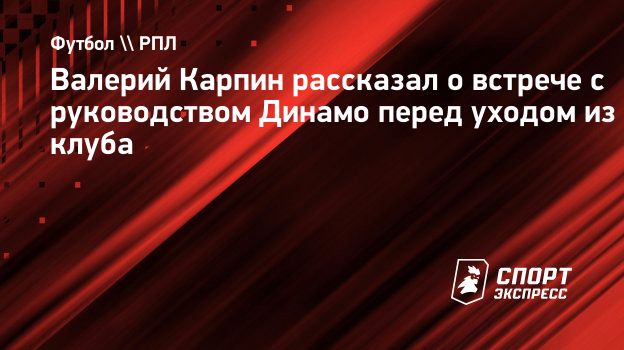 Карпин — об уходе из «Динамо»: «Встреч с руководством не было, только разговор с Юрием Соловьевым»