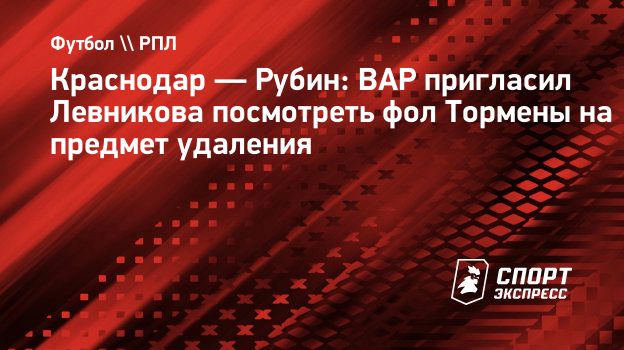 «Краснодар» — «Рубин»: ВАР пригласил Левникова посмотреть фол Тормены нa предмет удаления, но арбитр не изменил решение