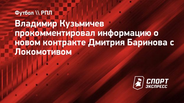 Агент Владимир Кузьмичев, представляющий интересы полузащитника «Локомотива» Дмитрия Баринова, прокомментировал «СЭ» информацию о новом контракте футболиста с московским клубом.