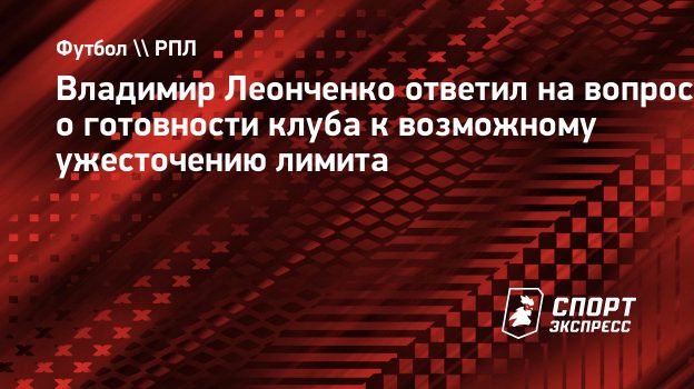 Генеральный директор «Локомотива» Владимир Леонченко в разговоре с «СЭ» ответил на вопрос о готовности клуба к возможному ужесточению лимита.