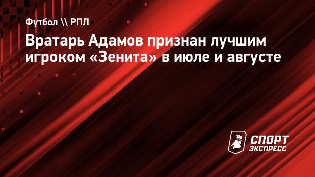 Вратарь Адамов признан лучшим игроком «Зенита» в июле и августе
