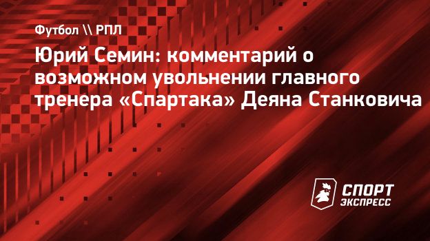 Бывший главный тренер сборной России Юрий Семин в комментарии для «СЭ» ответил на вопрос о возможном увольнении главного тренера «Спартака» Деяна Станковича.