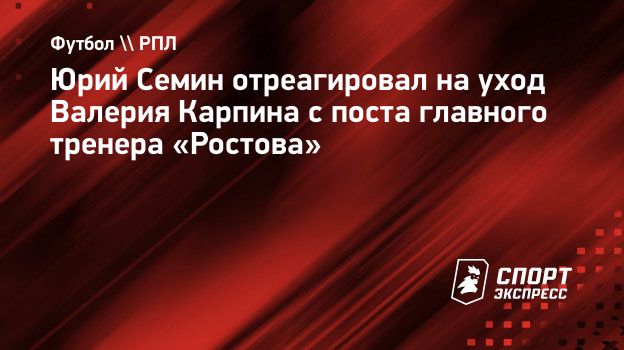 Бывший главный тренер «Локомотива» Юрий Семин в разговоре с «СЭ» отреагировал на уход Валерия Карпина с поста главного тренера «Ростова».