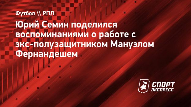 Бывший главный тренер «Локомотива» Юрий Семин в разговоре с «СЭ» поделился воспоминаниями о работе с экс-полузащитником Мануэлом Фернандешем.