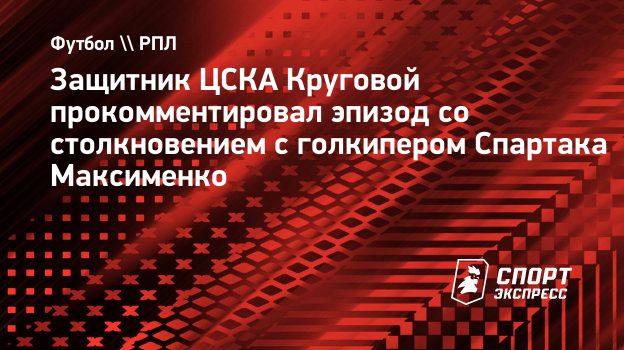 Защитник ЦСКА Данил Круговой прокомментировал «СЭ» эпизод со столкновением с голкипером «Спартака» Александром Максименко в штрафной соперника в матче 16-го тура РПЛ против красно-белых (0:1).