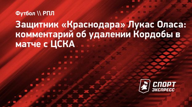 Защитник «Краснодара» Лукас Оласа ответил на вопрос «СЭ» об удалении Джона Кордобы в матче 7-го тура РПЛ против ЦСКА (1:1).