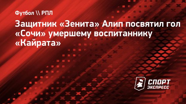 Защитник «Зенита» Алип посвятил гол «Сочи» умершему воспитаннику «Кайрата»
