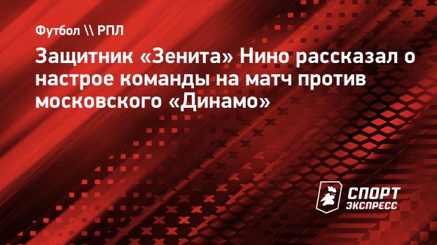 Защитник «Зенита» Нино поделился ожиданиями от матча 13-го тура чемпионата России против московского «Динамо».