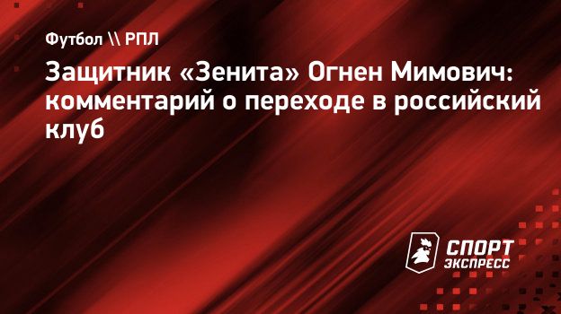 Мимович: «Приятно приехать в «Зенит» и бороться за титул»