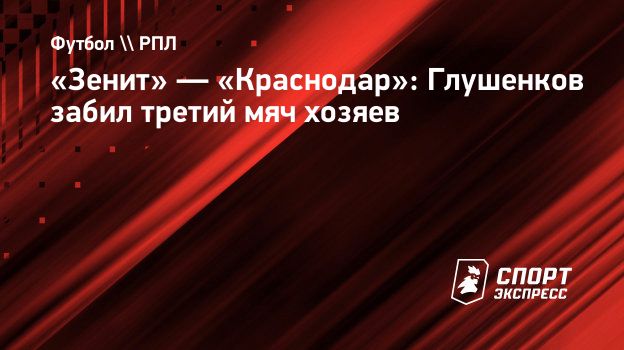 «Зенит» — «Краснодар»: Глушенков забил третий мяч хозяев