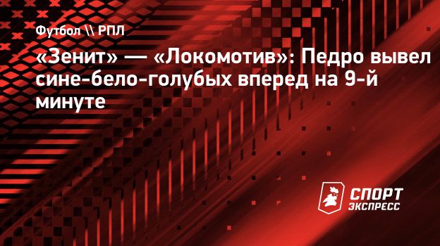 «Зенит» — «Локомотив»: Педро вывел сине-бело-голубых вперед на 9-й минуте