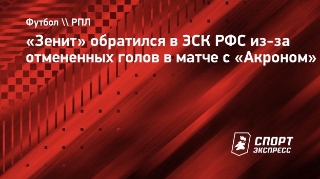 «Зенит» обратился в ЭСК РФС из-за отмененных голов в матче с «Акроном»
