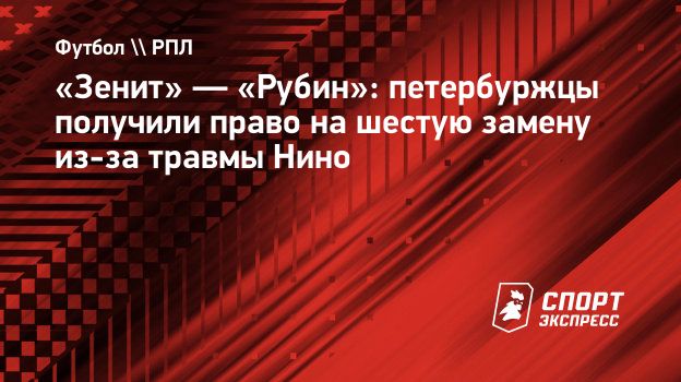 «Зенит» — «Рубин»: петербуржцы получили право на шестую замену из-за травмы Нино