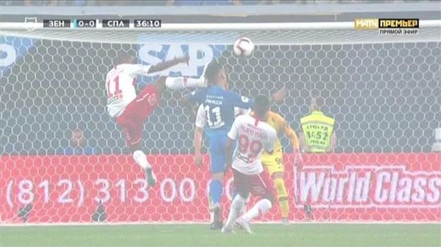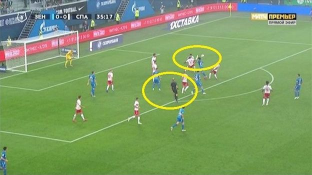 Судья неверно оценил единоборство спаратковца Фернанду и зенитовца Себастьяна Дриусси. Полузащитник красно-белых в своей штрафной площади, высоко выпрыгнув, ногой выбил мяч, но через мгновение ударил соперника шипами в голову.