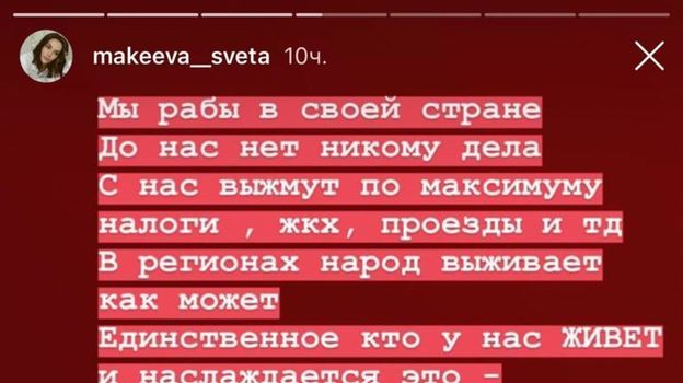 Светлана Макеева, жена защитника "Сочи" Евгения Макеева в своем Инстаграме поддержала нападающего "Зенита" Александра Кокорина и хавбека "Краснодара" Павла Мамаева. Она раскритиковала чиновника Минпромторга Дениса Пака, который ранее заявил, что "испытал стадания" от действий футболистов.