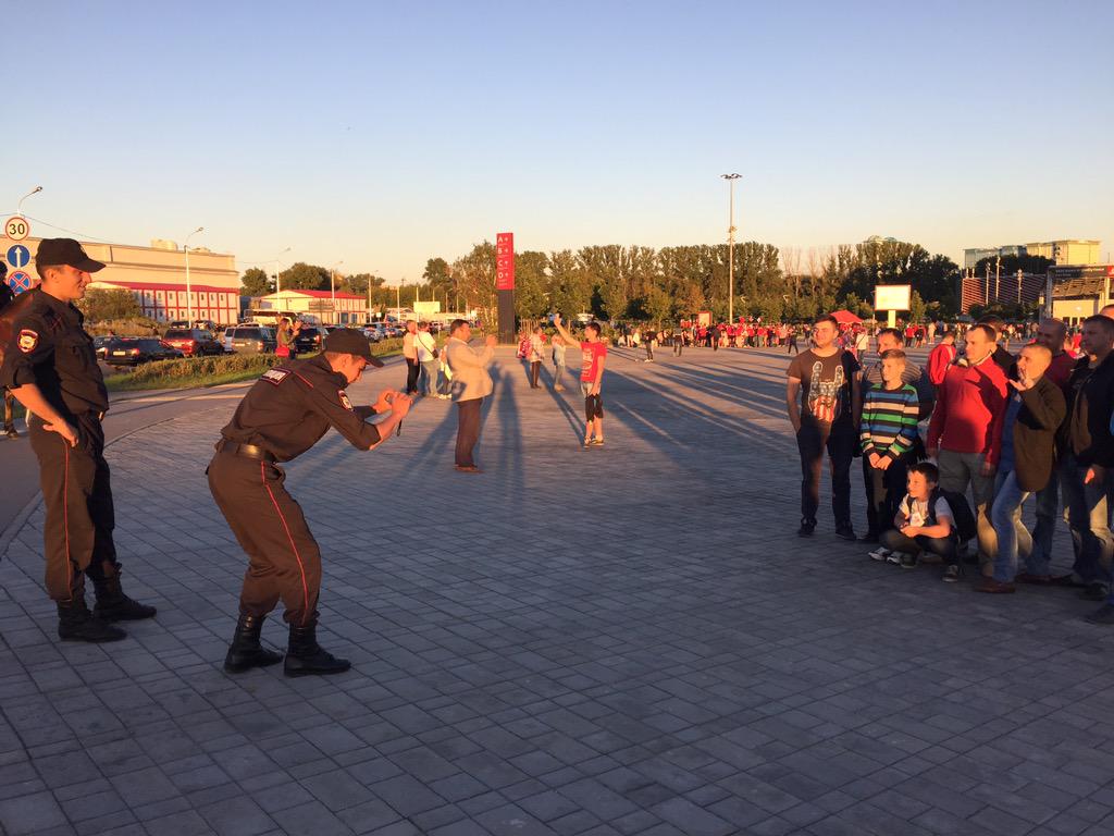 После драки, произошедшей на Баррикадной, полиция усилила бдительность. На каждой станции "сиреневой" ветки дежурят бойцы ОМОН. На моих глазах прямо в вагоне задержали четырех человек только за шумное поведение (фанаты что-то скандировали и подпрыгивали). Жестко, ничего не скажешь. Тем, кто пытался за болельщиков вступиться, предлагали пройти вместе с задержанными. (Дмитрий ЗЕЛЕНОВ)