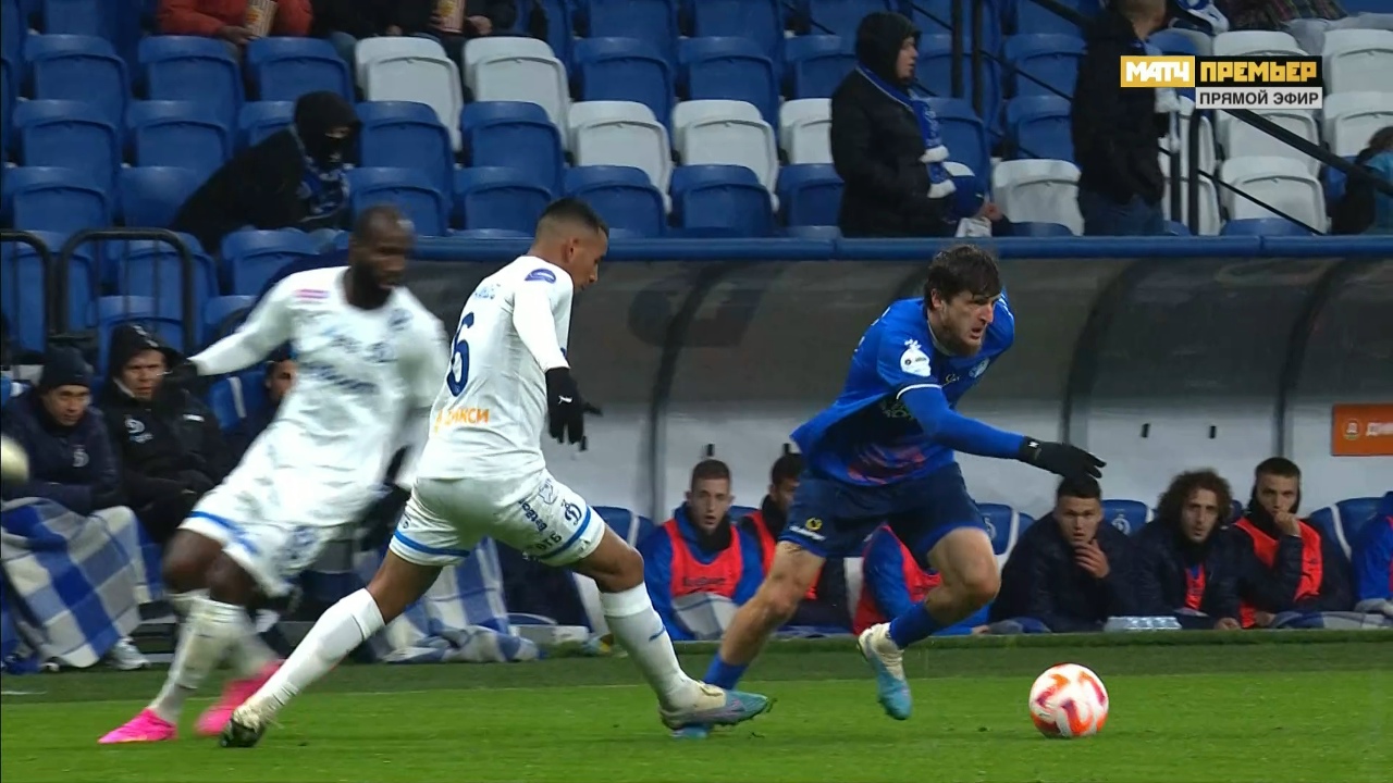 9-я минута. Ответили своим выпадом динамовцы, Нгамале оказался на острие, но пробил в голкипера. А за мгновение до этого Тюкавин нарушал правила, локтем отбившись от Божина.