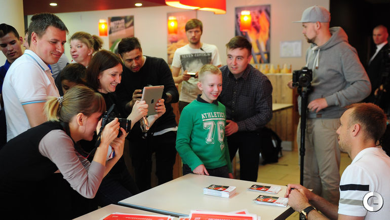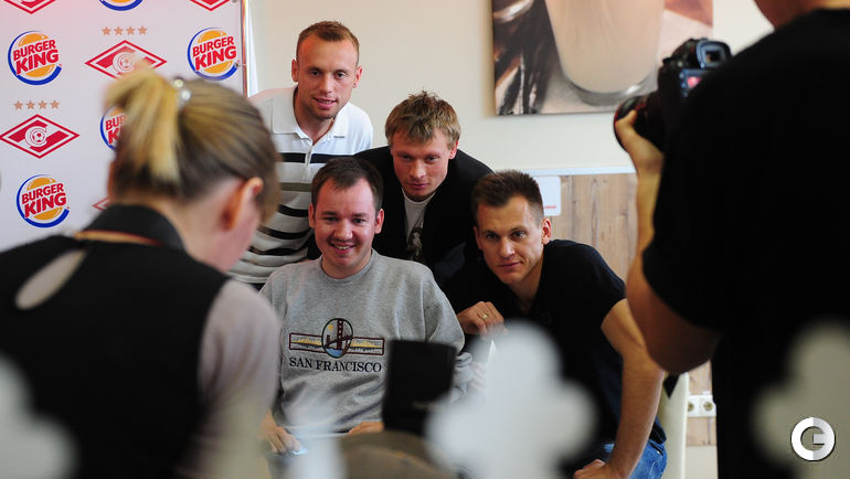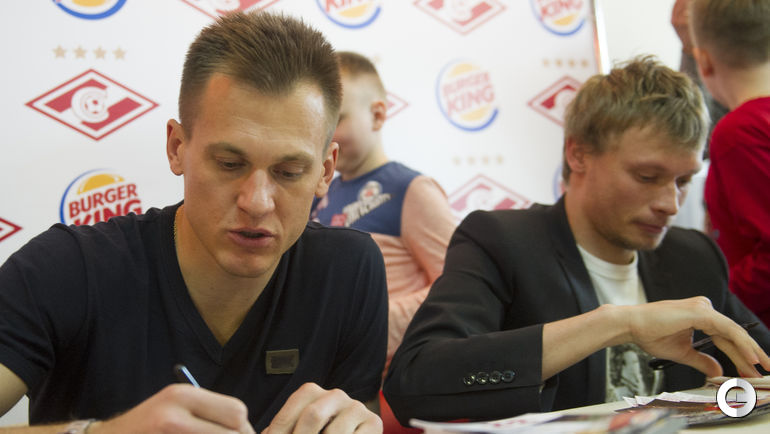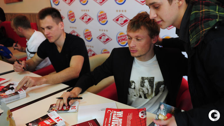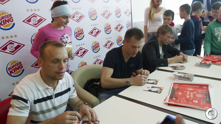 Игроки московского "Спартака" Евгений МАКЕЕВ, Денис ГЛУШАКОВ и Артем РЕБРОВ приняли участие в автограф-сессии для детей-инвалидов и болельщиков.