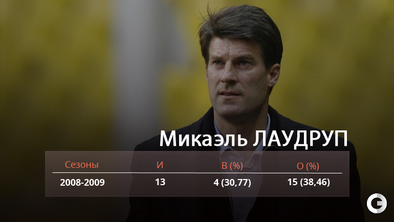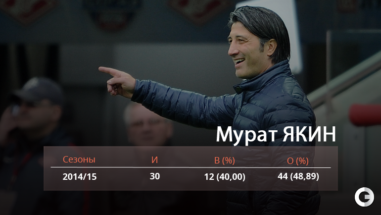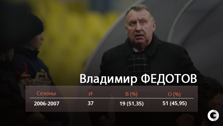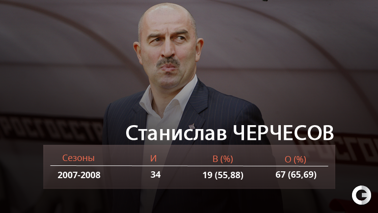 По набранным же очкам нынешний рулевой красно-белых (57,47%) уступает только тому же Черчесову и Валерию Карпину.