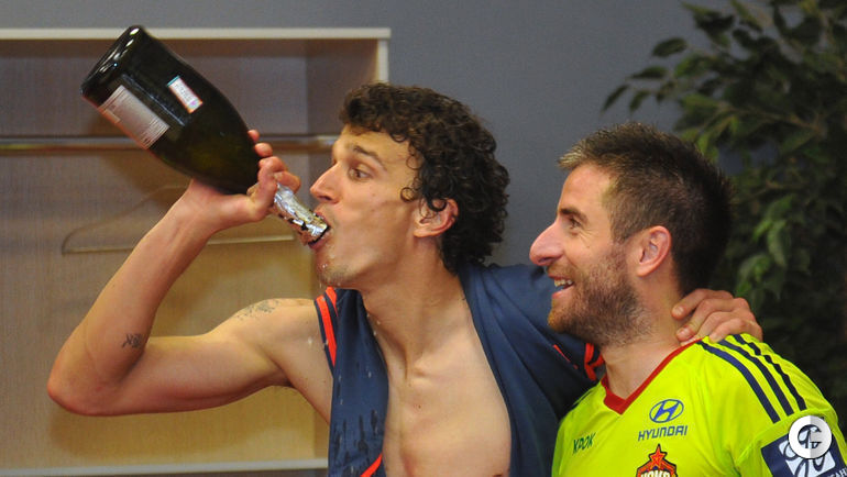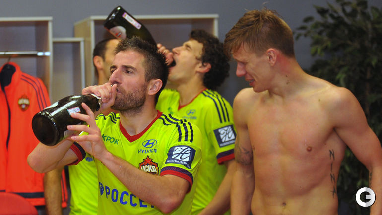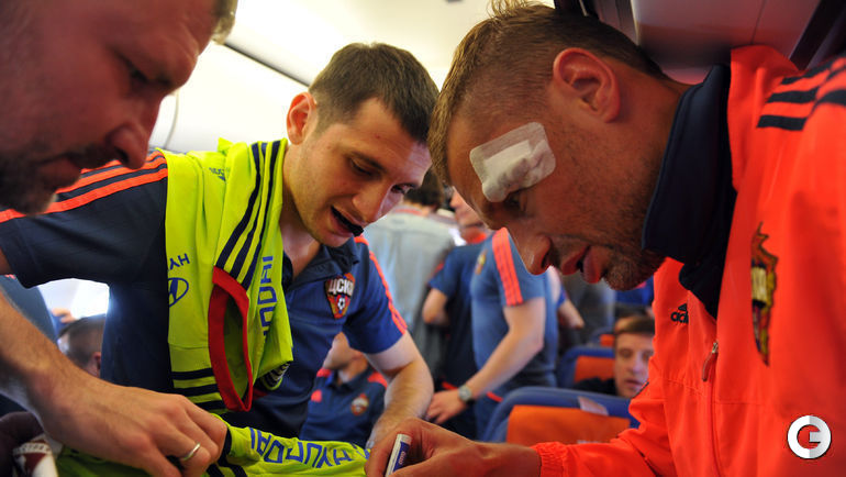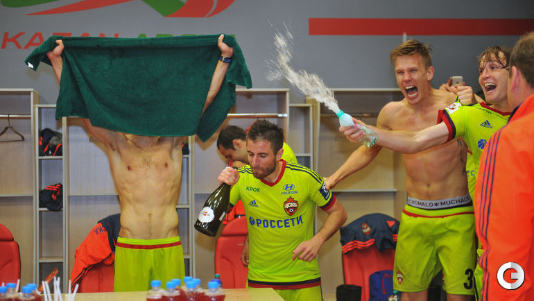 Фоторепортаж специального фотокорреспондента "СЭ" Александра ФЕДОРОВА из раздевалки и самолета ЦСКА, ставшего после победы в последнем туре чемпионата России в Казани на "Рубином" - 1:0, чемпионом России по футболу.