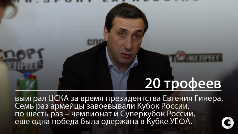 26 мая исполнилось 56 лет президенту ЦСКА Евгению Гинеру. "СЭ" поздравляет именинника и вспоминает главные цифры армейцев при Евгении Ленноровиче.