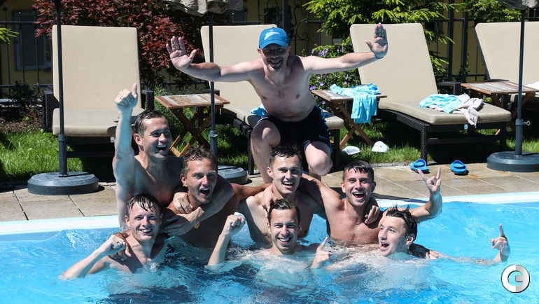 Во время предсезонного сбора в австрийском Шрунсе "Зенит" под руководством нового тренера Мирчи ЛУЧЕСКУ провел тренировку в бассейне.
