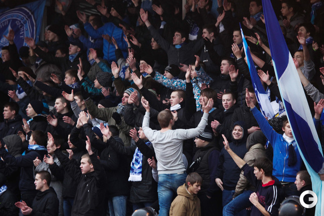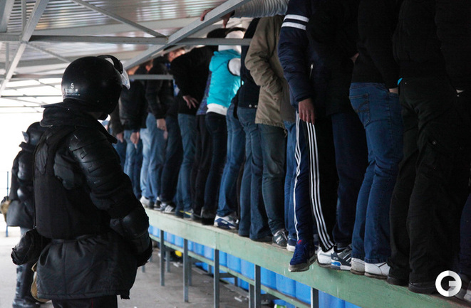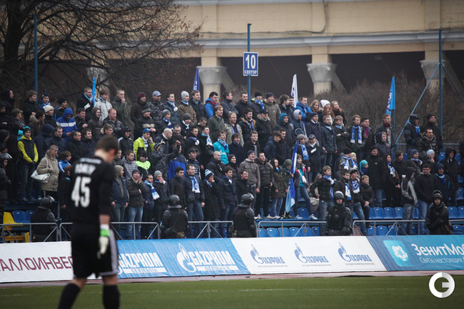 Болельщики на матче молодежного первенства России по футболу между "Зенитом" и ЦСКА на запасном поле "Петровского. Фото - Кристина КОРОВНИКОВА