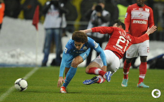 Футбол. Чемпионат России. Премьер-лига. 18-й тур. "Спартак" (Москва) – "Зенит" – 2:4 (1:2). Голы: Халк, 21 (0:1). Дзюба, 27 (1:1). Витсель, 41 (1:2). Витсель, 71 (1:3). Широков, 78 (1:4). Эменике, 81 (2:4). Удаления: Пареха, 69. Инсаурральде, 90+3. Фото - Александр ФЕДОРОВ, "СЭ"