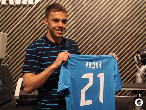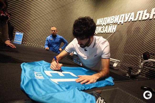 Новички "Зенита" Луиш Нету и Милан Родич представили болельщикам клуба свои клубные футболки. Фото - Кристина Коровникова