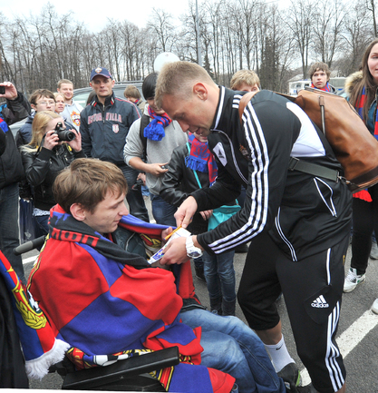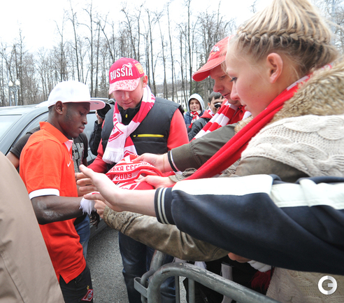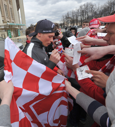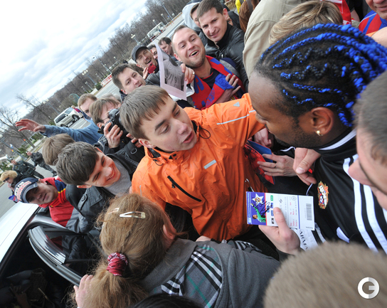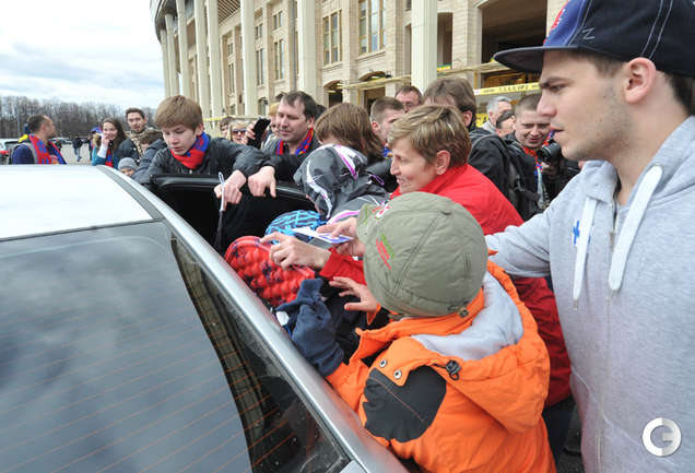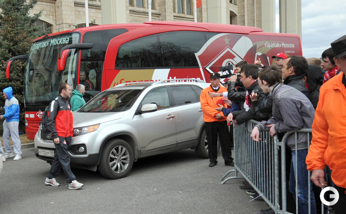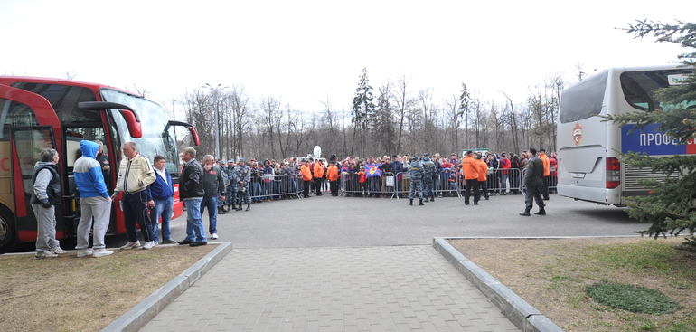Болельщики после матча ЦСКА - "Спартак" встречают футболистов. Фото - Татьяна Дорогутина, "СЭ"