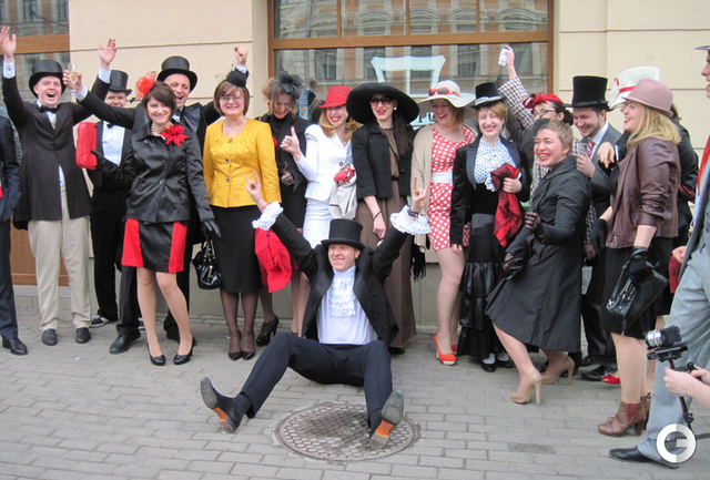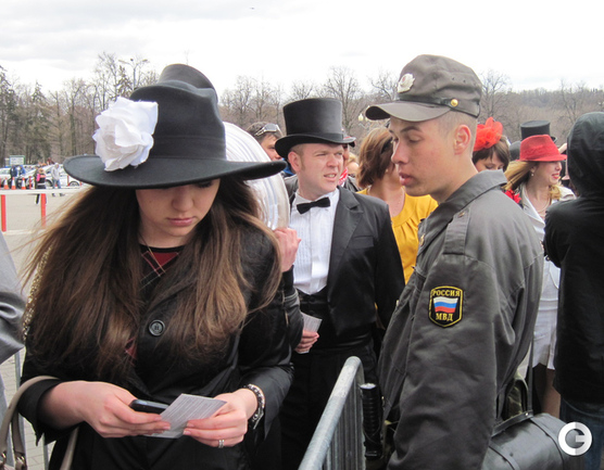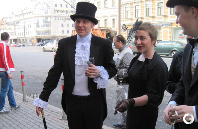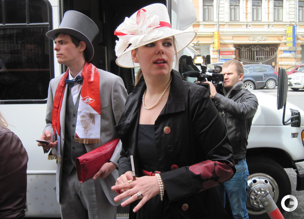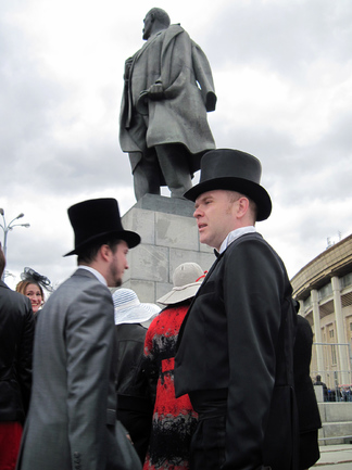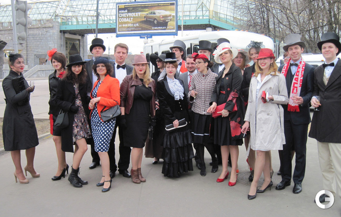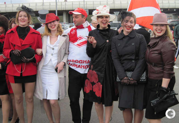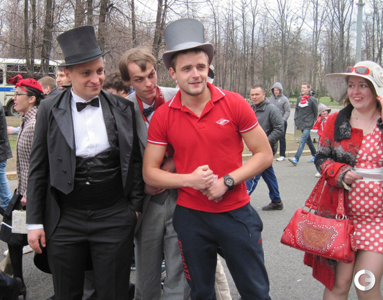 Болельщики "Спартака" в светских одеждах начала ХХ века на футбольном матч ЦСКА - "Спартак". Фото - Александр Мартанов, "СЭ"