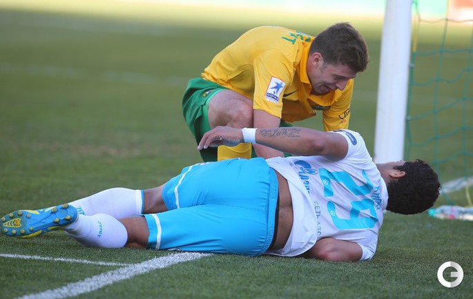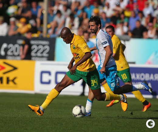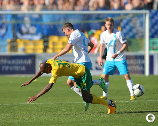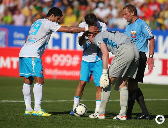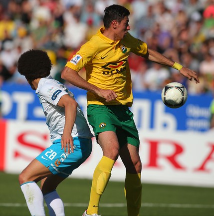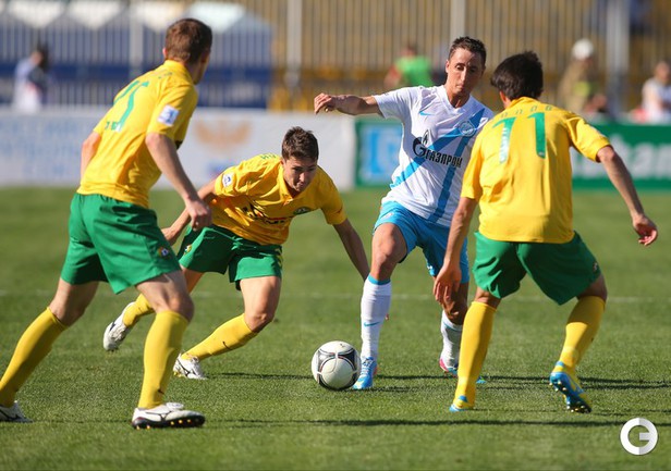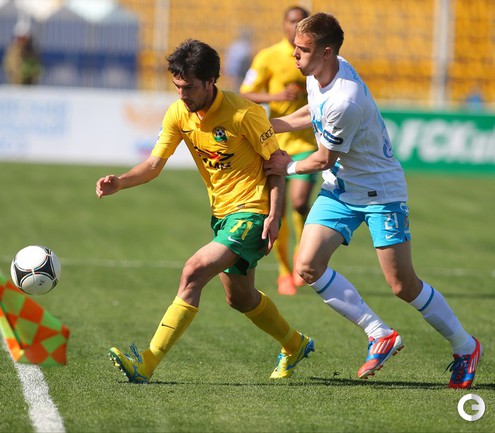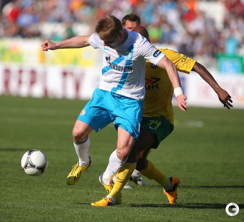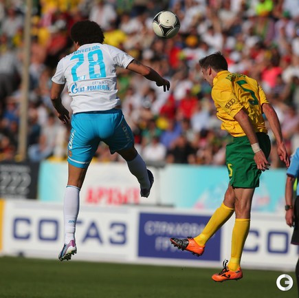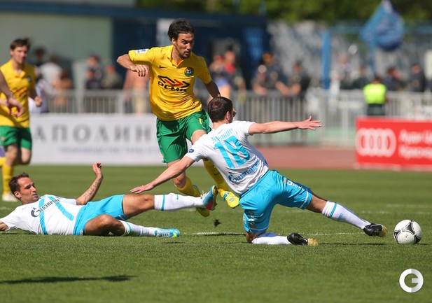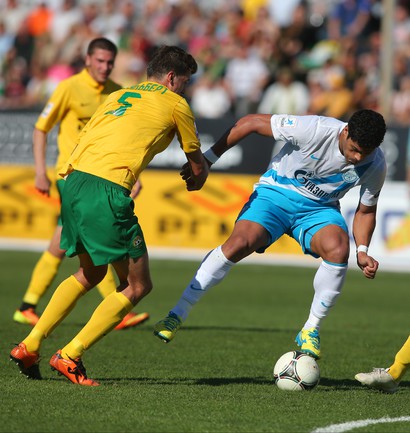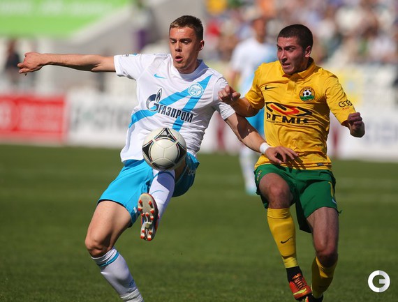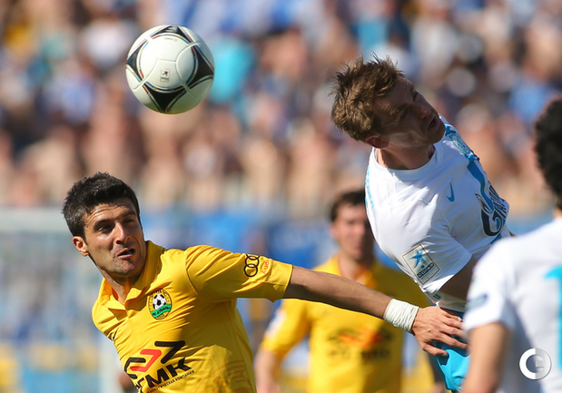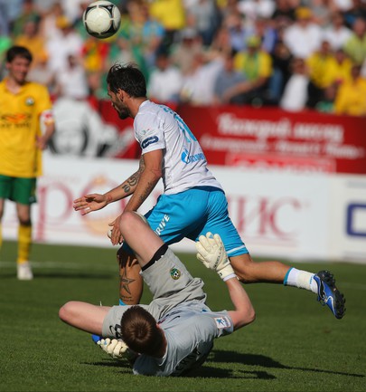 Чемпионат России. Премьер-лига. 26-й тур. Краснодар. "Кубань" (Краснодар) - "Зенит" (Санкт-Петербург) - 2:2 (2:1). Голы: Зырянов, 6 (0:1). Никулае, 23 (1:1). Попов, 30 (2:1). Данни, 66 (2:2). На последних секундах матча после удара Алексея Ионова мяч попал в штангу ворот гостей. Фото - Виталий Тимкив