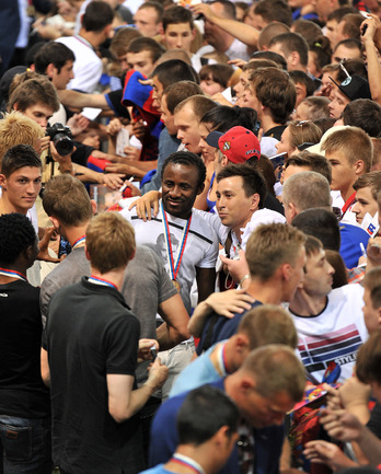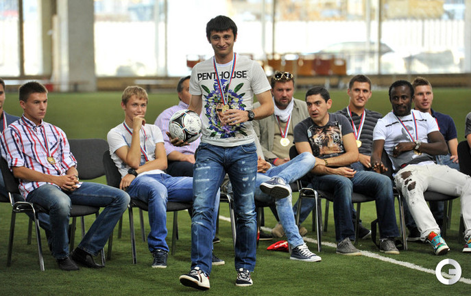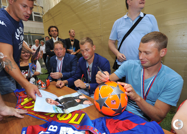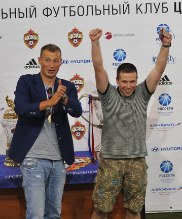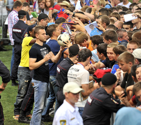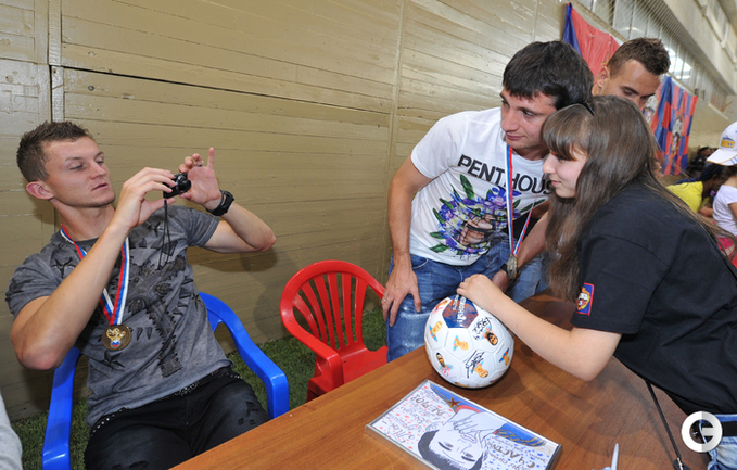 ЦСКА получил золотые медали чемпионата-2012/2013 без лишнего шума – не было ни приглашенных звезд эстрады, ни долгих пафосных речей, ни сверкающих колонных залов. Зато на церемонию в клубный манеж позвали болельщиков, которые получили возможность пообщаться с командой в непринужденной обстановке. Фото - Алексей Иванов, "СЭ", Александр Федоров, "СЭ"