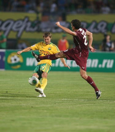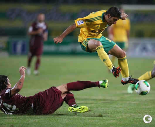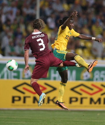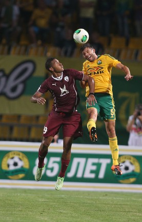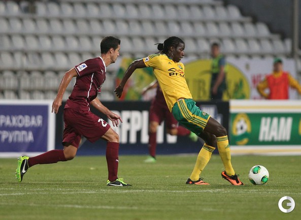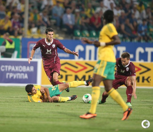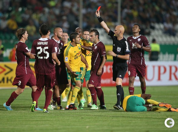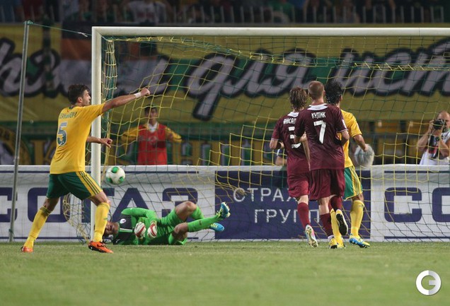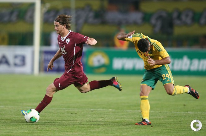 Футбол. Чемпионат России. Премьер-лига. 1-й тур. "Кубань" (Краснодар) – "Рубин" (Казань) – 1:1 (0:0). Голы: Еременко, 71 (0:1). Езбилиз, 74 (1:1). "Кубань" и "Рубин" сыграли вничью в матче 1-го тура премьер-лиги-2013/14. На гол казанца Романа Еременко во втором тайме точным ударом со штрафного ответил Арас Езбилиз. Фото Виталия Тимкива