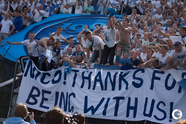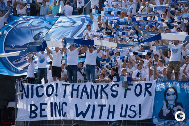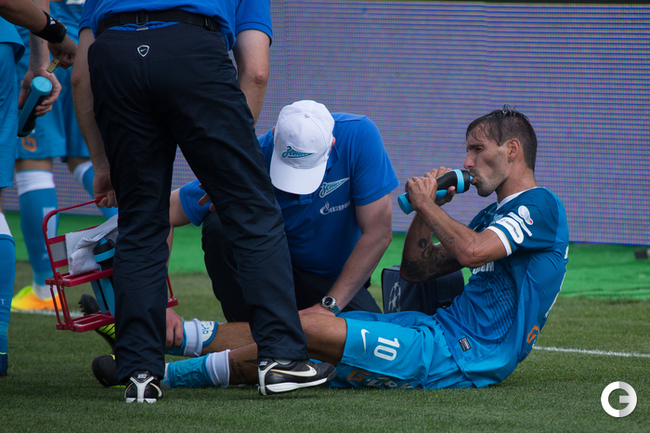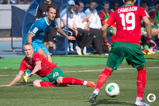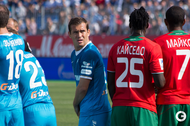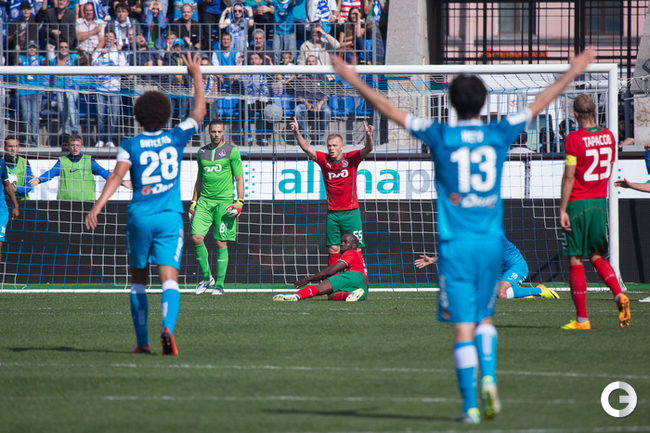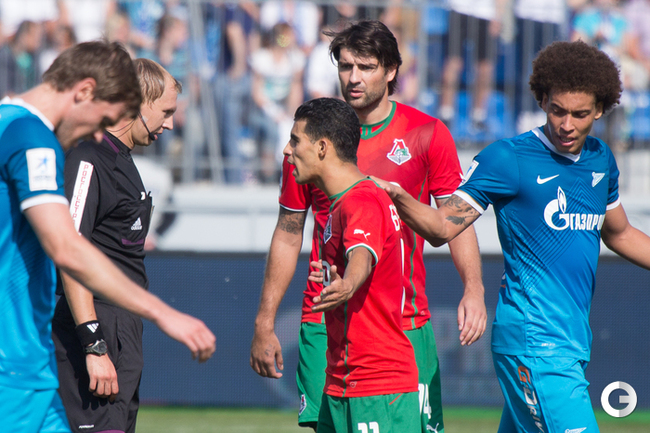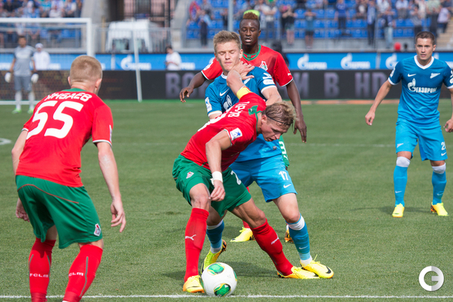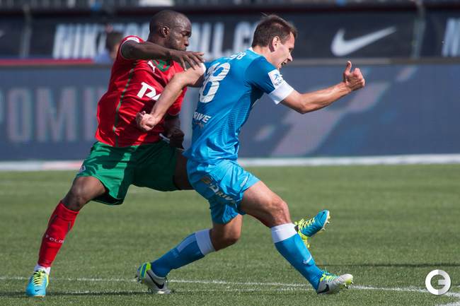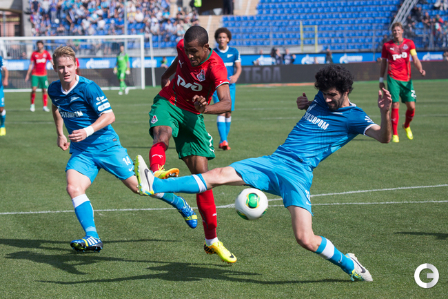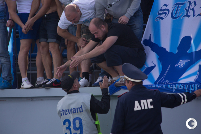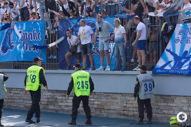 Чемпионат России. Премьер-лига. 7-й тур. "Зенит" (Санкт-Петербург) – "Локомотив" (Москва) – 2:1 (1:0). Голы: Широков, 43 – с пенальти (1:0). Буссуфа, 70 – с пенальти (1:1). Зырянов, 86 (2:1). На 16-й минуте несколько фанатов питерцев прорвались на беговые дорожки стадиона "Петровский" с целью вывести из строя специальные колонки, заглушающие мат. Болельщикам удалось сбить колонки и вернуться на свои места, после чего стюарды вернули технику на место. Фото - Кристина Коровникова