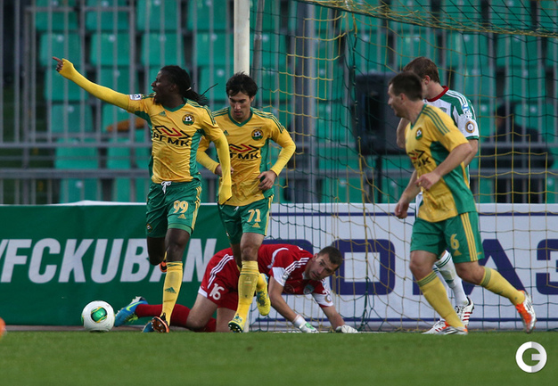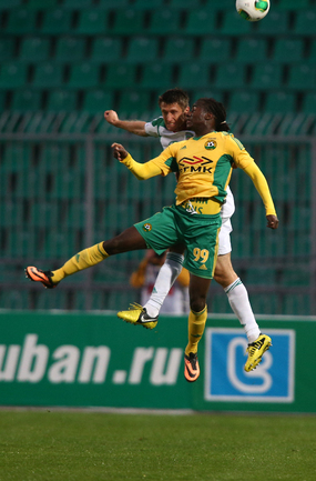 Футбол. Премьер-лига. 10-й тур. "Кубань" – "Терек" – 3:1 (2:1). Голы: Маурисиу, 2 (0:1). Букур, 6 (1:1). Бальде, 44 (2:1). Шандау, 66 (3:1). "Кубань" в матче 10-го тура премьер-лиги одержала победу со счетом 3:1, пропустив на второй минуте встречи. В составе гостей отличился Маурисиу, у хозяев – Букур, Бальде и Шандау. Фото - Виталий ТИМКИВ