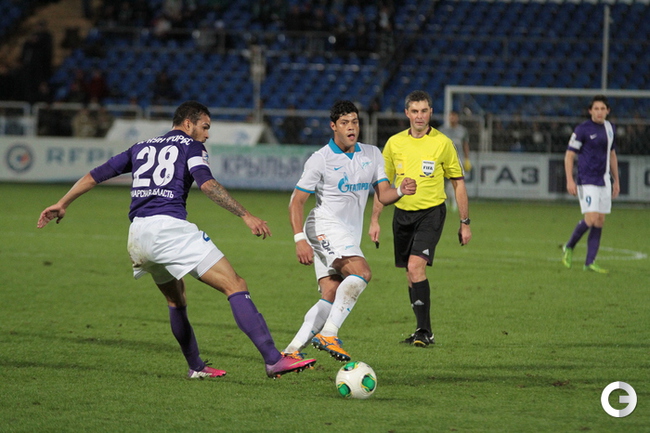 Футбол. Чемпионат России. Премьер-лига. 10-й тур. "Крылья Советов" (Самара) – "Зенит" (Санкт-Петербург) – 1:4. Голы: Горе, 23 (1:0). Халк, 48 (1:1). Шатов, 51 (1:2). Халк, 61 (1:3). Шатов, 79 (1:4). Фото - Игорь ГОРШКОВ