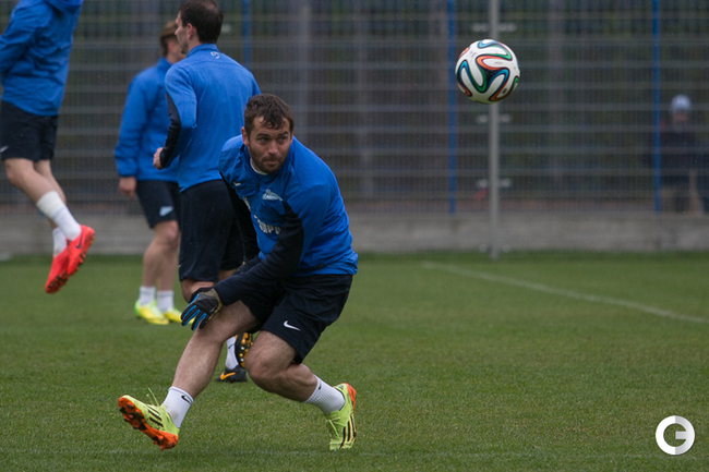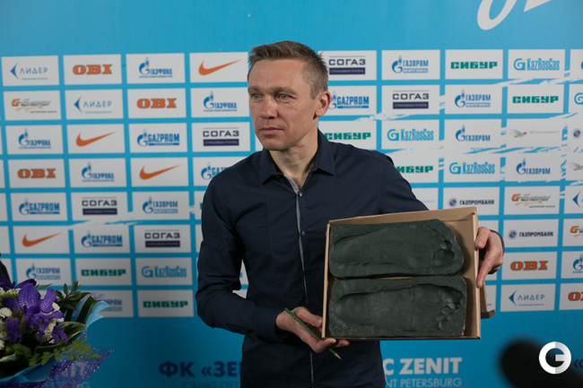 Сегодня состоялась открытая тренировка "Зенита", а также церемония введения в Зал зенитовской славы полузащитника Александра Горшкова, который выступал за питерский клуб с 1997 по 2001 год и с 2004 по 2008 год. Согласно традиции, он оставил отпечатки своих ног с автографом, которые и будут храниться в Зале славы. Фото - Кристина Коровникова, "СЭ"