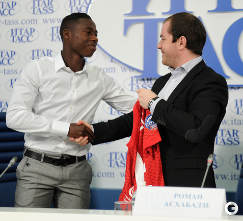 Москва.Генеральный директор ФК "Спартак" Роман Асхабадзе представил новичков клуба Романа Широкова и Квинси Промеса. Фото - Алексей ИВАНОВ "СЭ"