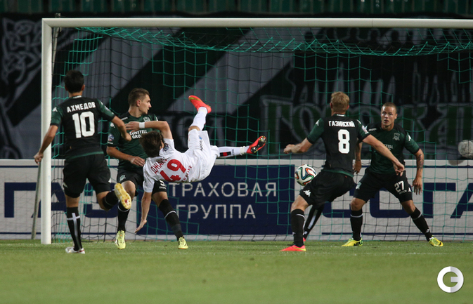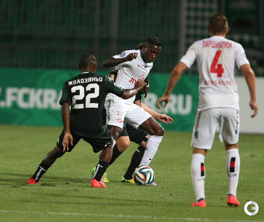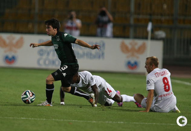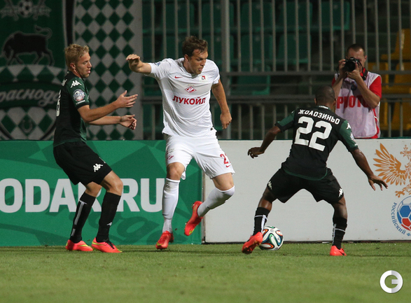 Чемпионат России. Премьер-лига. 3-й тур. "Краснодар" – "Спартак" (Москва) – 4:0 (1:0). Голы: Измайлов, 27 (1:0). Ари, 56 (2:0). Быстров, 62 (3:0). Жоаузинью, 67 – с пенальти (4:0). В этом году "Краснодар" уже обыгрывал "Спартак" с таким же счетом – 22 марта в игре 22-го тура прошлого сезона. Тогда красно-белыми руководил Дмитрий Гунько.Фото - Виталий Тимкив