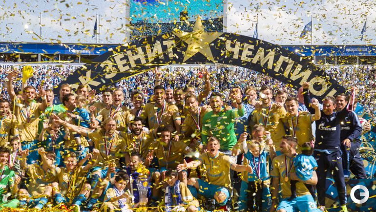 "Зенит" стал обладателем трофея чемпионата России 2014/15. "СЭ" предлагает посмотреть, как команда празднует победу. Фото Вячеслав ЕВДОКИМОВ, ФК "Зенит"