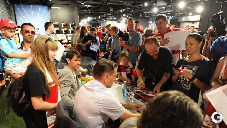 Москва. "Открытие Арена". Автограф-сессия тренерского штаба "Спартака" Дмитрия Аленичева, Егора Титова и Дмитрия Ананко. Фото Алексей ИВАНОВ, "СЭ"