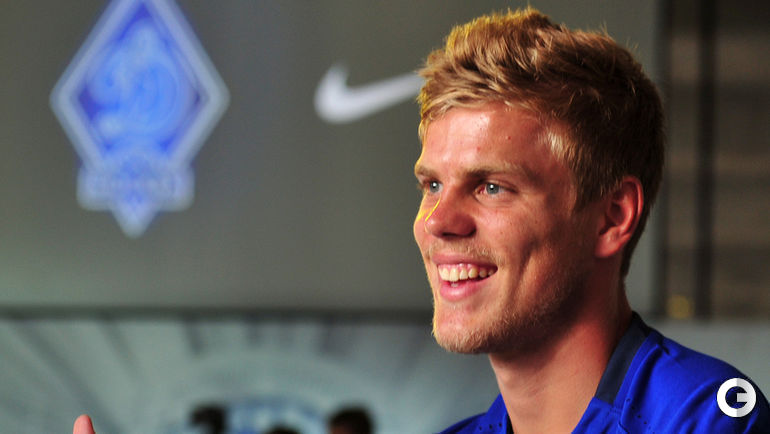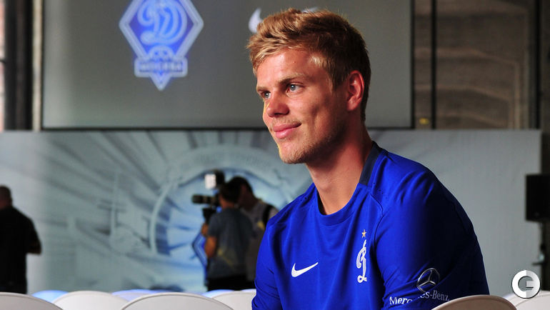 Сегодня в Москве состоялась презентация новой формы "Динамо", в которой приняли участие Роман Зобнин, Матье Вальбуэна и Александр Кокорин. Фото - Александр ФЕДОРОВ, "СЭ"