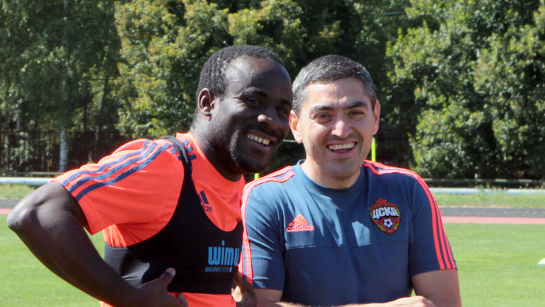Думбья шутит с братьями Березуцкими на тренировке ЦСКА