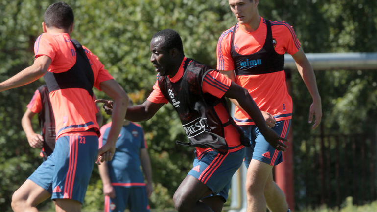 Нападающий Сейду Думбья принял участие в первой тренировке в составе ЦСКА после возвращения из "Ромы". Фото Валентин КОБЫЩА, ПФК ЦСКА