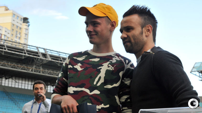 В перерыве матча "Динамо" – "Урал" Матье Вальбуэна попрощался с болельщиками московского клуба. Фото – Никита УСПЕНСКИЙ, Алексей ИВАНОВ, "СЭ"